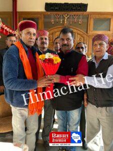 वरिष्ठ भाजपा नेता विजय बहल ने रविवार को अपने समर्थकों सहित पूर्व मुख्यमंत्री प्रेम कुमार धूमल के निबास स्थान समीरपुर मैं पहुंच कर उनसे मुलाकात करके आशीर्वाद लिया बताते चले की विजय बहल को हाल ही में प्रदेश भाजपा हाई कमान द्वारा भाजपा प्रदेश कार्यकारिणी का सदस्य बनाया गया है भाजपा प्रदेश कार्यकारिणी सदस्य बनने के बाद पहली बार बह समीरपुर पहुंचे थे इस दौरान उन्होंने पूर्व मुख्यमंत्री प्रेम कुमार धूमल से शिष्टाचार भेंट करके उनका आभार व्यक्त किया इस दौरान पूर्व मुख्यमंत्री ने उन्हें बधाई एवं शुभकामनाएं देते हुए कहा कि भारतीय जनता पार्टी विश्व की सबसे बड़ी पार्टी है और सौभाग्य की बात है कि हम सब उस पार्टी के कार्यकर्ता हैं भाजपा हाई कमान ने आपको प्रदेश भाजपा का कार्यकारिणी सदस्य बनाया है इसलिए अब आपका दायित्व बनता है कि आप ईमानदारी कर्तव्य निष्ठा के साथ कम करें और आने वाले लोकसभा चुनाव में भाजपा के उम्मीदवार को सुजानपुर विधानसभा क्षेत्र से बंपर मतों से लीड दिलवाएं भाजपा नेता विजय बहल ने कहा कि भारतीय जनता पार्टी ने उनके ऊपर जो विश्वास जताया है इसके लिए वह पूर्व मुख्यमंत्री प्रेम कुमार धूमल केंद्रीय मंत्री अनुराग ठाकुर पार्टी प्रदेश अध्यक्ष राजीव बिन्दल सहित तमाम भाजपा शीर्ष नेतृत्व का धन्यवाद करते हैं उन्हें जो भी जिम्मेदारी दी गई है उसे ईमानदारी के साथ निभाया जाएगा आने वाला लोकसभा चुनाव में हमीरपुर संसदीय क्षेत्र से चुनाव मैदान में उतरने वाले प्रत्याशी वर्तमान में भारत सरकार में मंत्री अनुराग ठाकुर को विगत चुनाव के तर्ज पर इस बार भी बंपर मतों के लीड दिलवाई जाएगी इस मौके पर पूर्व भाजपा मंडल अध्यक्ष वीरेंद्र ठाकुर जिला भाजपा सचिव विनोद ठाकुर महामंत्री अनिल कौशल पूर्व महामंत्री व ज़िला सचिव पवन शामा किसान मोर्चा जिला अध्यक्ष अनिल काकू जिला भाजपा महिला मोर्चा अध्यक्ष अर्चना चौहान सहित सैकड़ो कार्यकर्ता मौजूद रहे।
