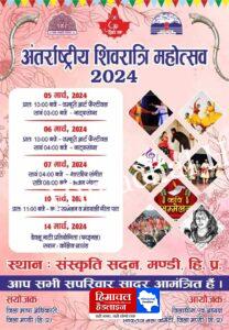 अंतरराष्ट्रीय शिवरात्रि महोत्सव-2024 को और आकर्षक बनाने के प्रयासों की कड़ी में मंडी में नाट्य व शास्त्रीय संगीत उत्सव का आयोजन किया जाएगा। मंडी के कांगनीधार स्थित संस्कृति सदन में 5 से 7 मार्च तक हो जा रहे इस उत्सव में सांस्कृतिक संध्याएं होंगी जिनमें नाट्य और शास्त्रीय संगीत विधा से जुड़े कलाकार तथा समूह अपनी प्रस्तुति देंगे। यह जानकारी मंडी शिवरात्रि मेला समिति के अध्यक्ष एवं उपायुक्त अपूर्व देवगन ने दी। उन्होंने सभी कला प्रेमियों से उत्सव में अधिक से अधिक संख्या में भाग लेकर इन संध्याओं का आनंद लेने का आग्रह किया है ।