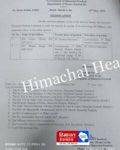 ब्रेकिंग न्यूज आचार सहित हटते ही एसपी हमीरपुर ज़िले के नये एसपी भगत सिंह ऐसा क्या हो गया कि अचार सहायता हटाने के तुरंत बाद एसपी हमीरपुर की ट्रांसफर थर्ड बटालियन मंडी ड्रॉ में कर दी गई है आज उनकी मासिक बैठक थी लेकिन तुरंत बाद ही उनके ट्रांसफर के ऑर्डर आ चुके थे ऐसा क्या कारण रहा की एसपी हमीरपुर को बटालियन में ट्रांसफर करना जरूरी समझा लेकिन वह भी इलेक्शन रिजल्ट आने के ठीक 3 दिन बाद उनकी ट्रांसफर किसी दूसरी जगह की जा रही सरकार बनते ही यह पहला ट्रांसफर आर्डर है