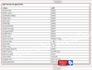 हिमाचल प्रदेश हमीरपुर से पांच वार जीत हासिल कर चुके संसद अनुराग ठाकुर का लिस्ट में शामिल नहीं है