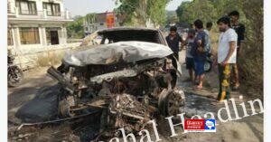 जिला हमीरपुर के नादौन और व्यास पुल के पास एक कार दुर्घटना का शिकार हो गई। देर रात करीब 1:00 बजे एक कार ज्वालाजी की ओर से आ रही थी और ब्यास पुल के नजदीक सड़क के किनारे बने एक पैरापिट से टकरा गई। जिसके बाद गाड़ी में भीषण आग लग गई।