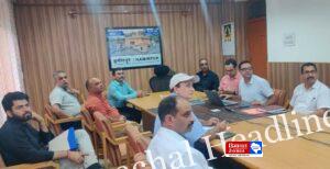 मतदाता टीमों की रेंडमाइजेशन प्रक्रिया के दौरान उपस्थित भारत निर्वाचन आयोग के सामान्य पर्यवेक्षक चंद्रभूषण त्रिपाठी, जिला निर्वाचन अधिकारी अमरजीत सिंह और अन्य अधिकारी।