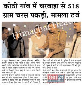 जिला हमीरपुर के कोठी गांव में चरवाहा से 520 ग्राम चरस पकड़ी,पुलिस में मामला दर्ज