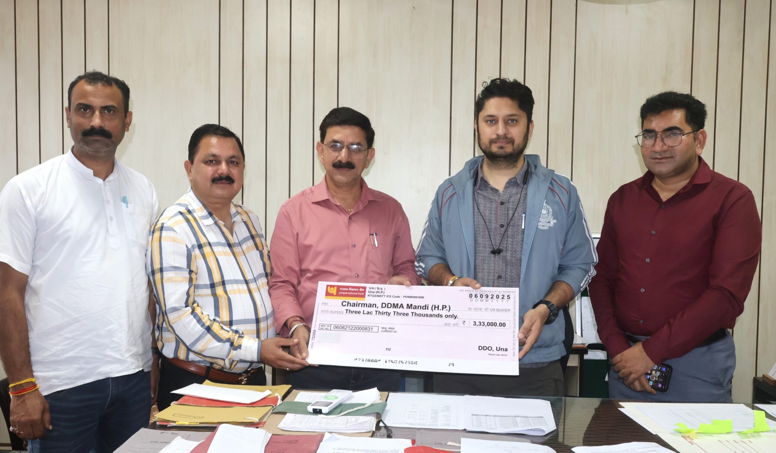 जिला ऊना से मंडी आपदा राहत को 3.33 लाख की सहायता राशि भेंट