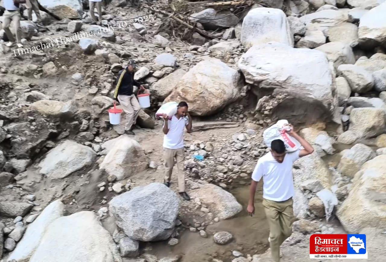 आपदा में सेवा की मिसाल बने होमगार्ड जवान सराज के दुर्गम गांवों तक पैदल पहुंचाई राहत सामग्री