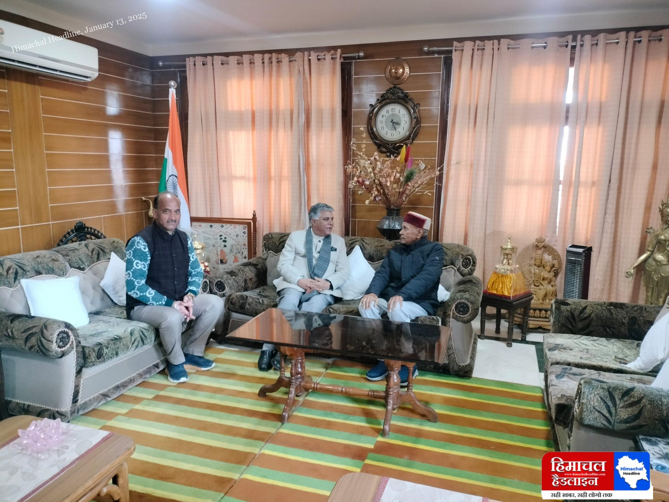 पूर्व मुख्यमंत्री प्रेम कुमार धूमल से की कांगड़ा संसदीय क्षेत्र के सांसद राजीव भरद्वाज ने शिष्टाचार भेंट