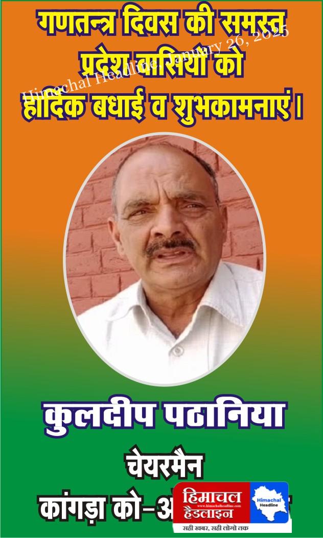 Kuldeep Singh Pathania sends 26 January greetings message to Kangra Bank Chairman