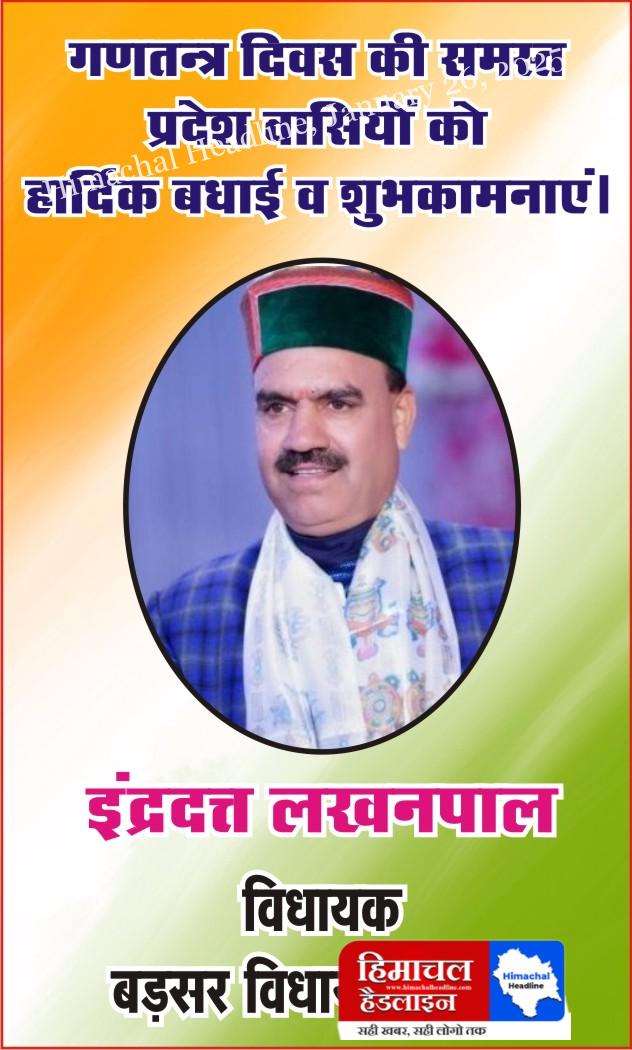 MLA of Barsar assembly constituency Indra Dutt Lakhan Pal wishes all the people of the state on 26 January