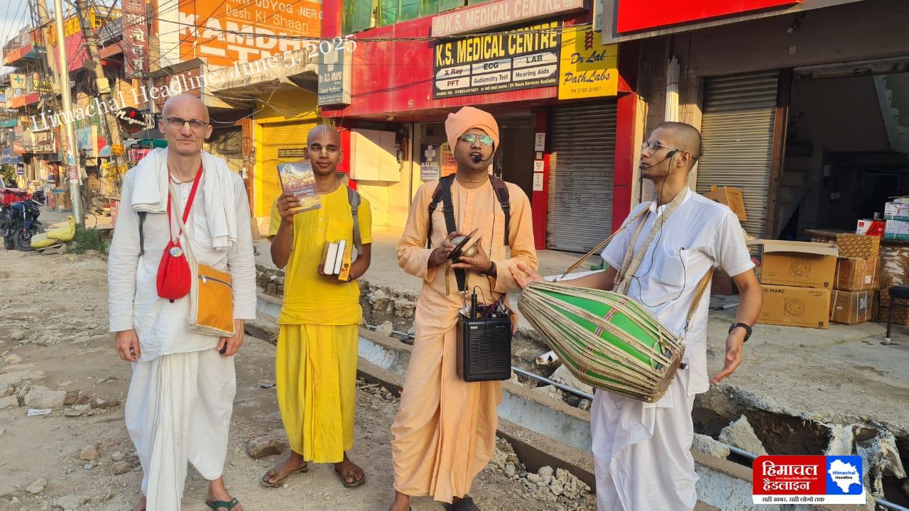 नेरचौक बाजार में विदेशी और नेपाली श्रद्धालुओं ने गीता व रामायण का किया प्रचार, युवाओं को बताया सनातन धर्म का महत्व