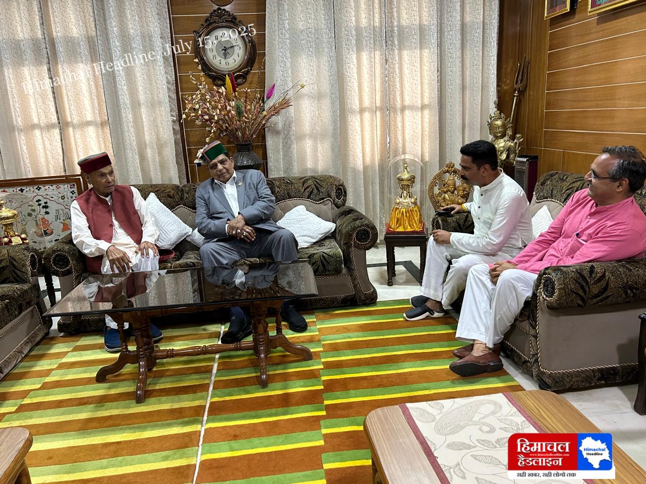 पूर्व मुख्यमंत्री प्रेम कुमार धूमल के निवास स्थान पर पंहुचे कांग्रेस पार्टी के मंत्री