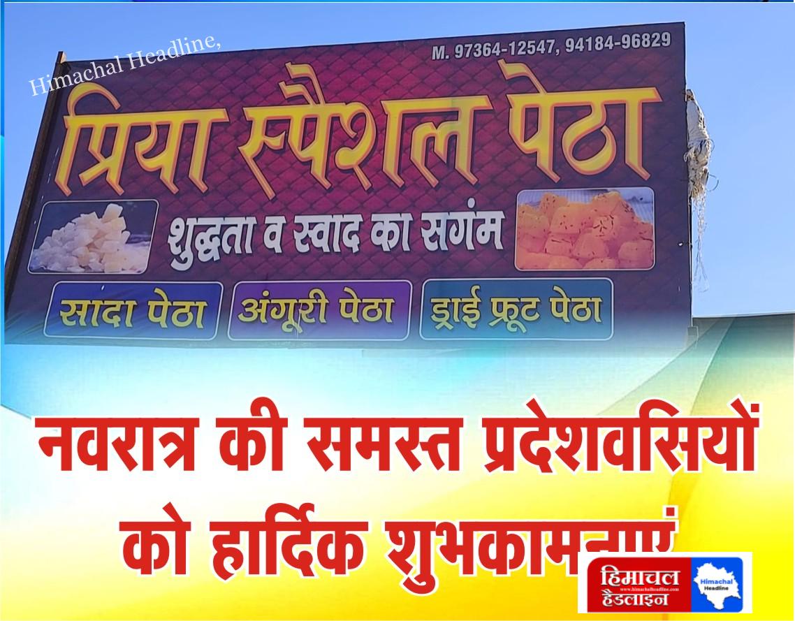 नवरात्रि के शुभ अवसर पर पर प्रिया स्पेशल पैठा की ओर से सभी प्रदेशवासियों को हार्दिक शुभकामनाएं माता रानी की अटूट कृपा बनी रहे सभी पर