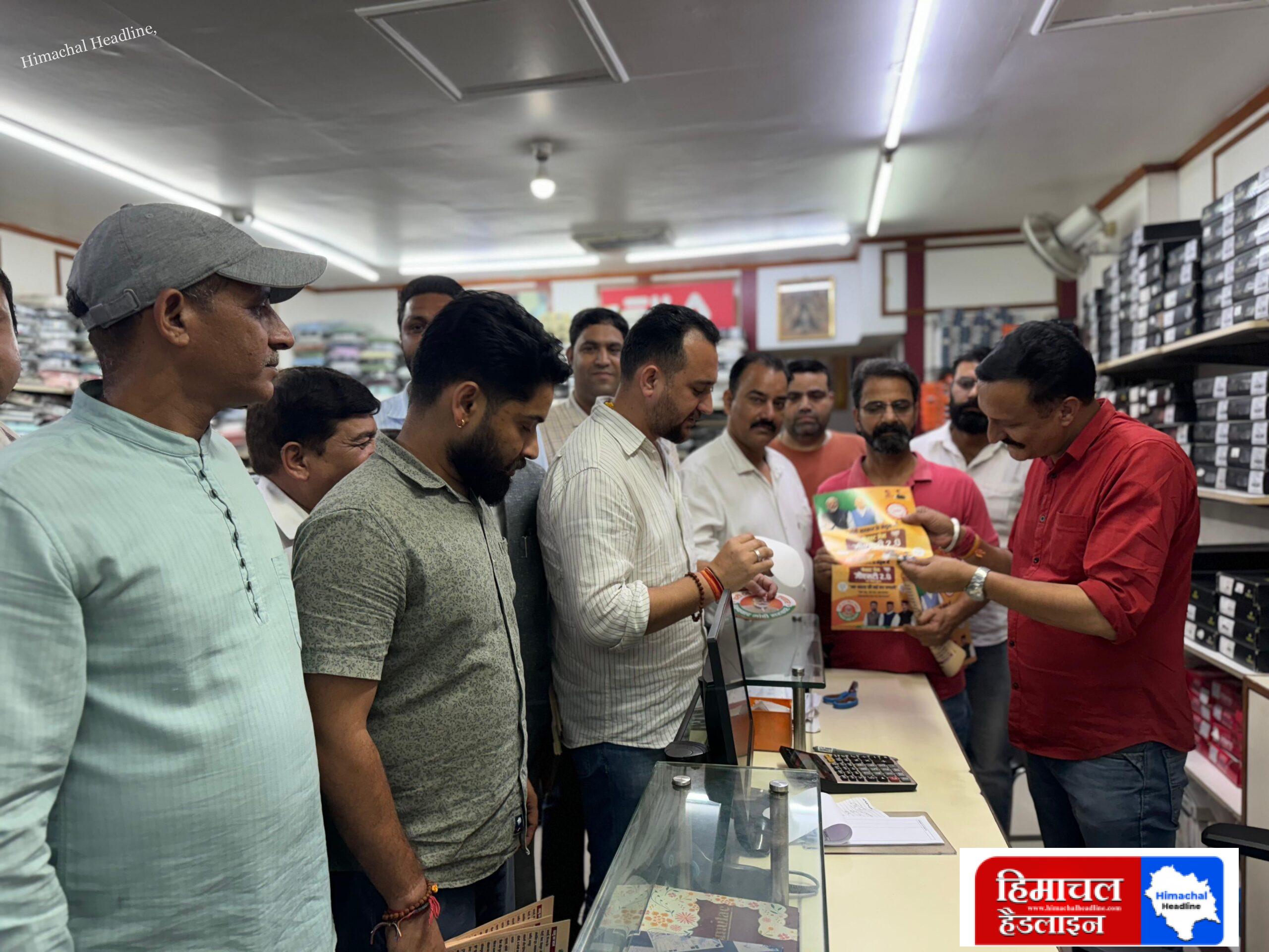 शहरी भाजपा मंडल हमीरपुर ने बाजार में व्यापारियों को पंफ्लेट बांटकर किया जागरूक
